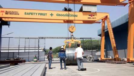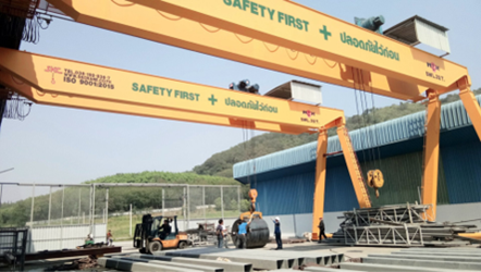 Suitable for installation on outdoor areas And indoor. In the factory building, it has all the same features as a single girder overhead crane. And in the case of a double girder Because users need the image efficiency to lift objects And heavier products And the use area in a wider area.