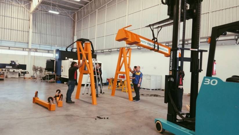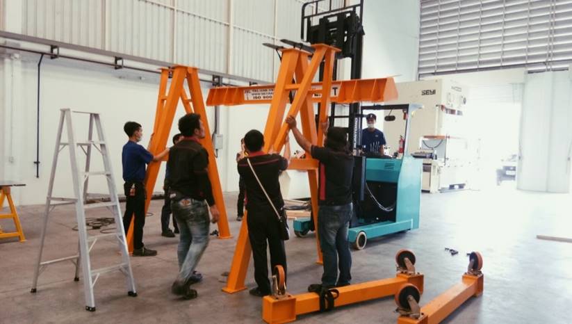Is a gantry crane with urethane wheel that is suitable for Weight loss Since the wheel is a wheel that can be moved Without using an electric propulsion unit.